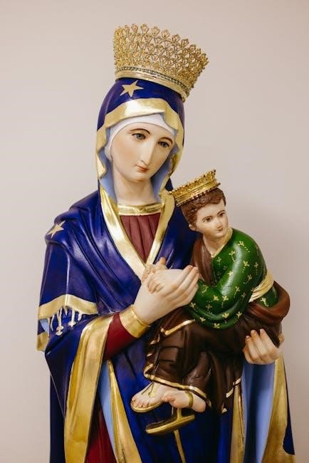 PDF guides for the novena frequently emphasize Mary’s role as a powerful intercessor, connecting us to God’s grace and the heavenly realm.